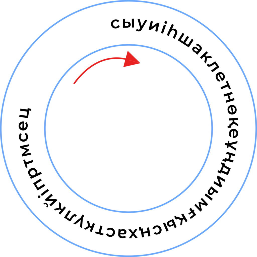 32. Меңзер бағыты бойынша бір әріп тастай отырып, мақал құрастырып оқы.